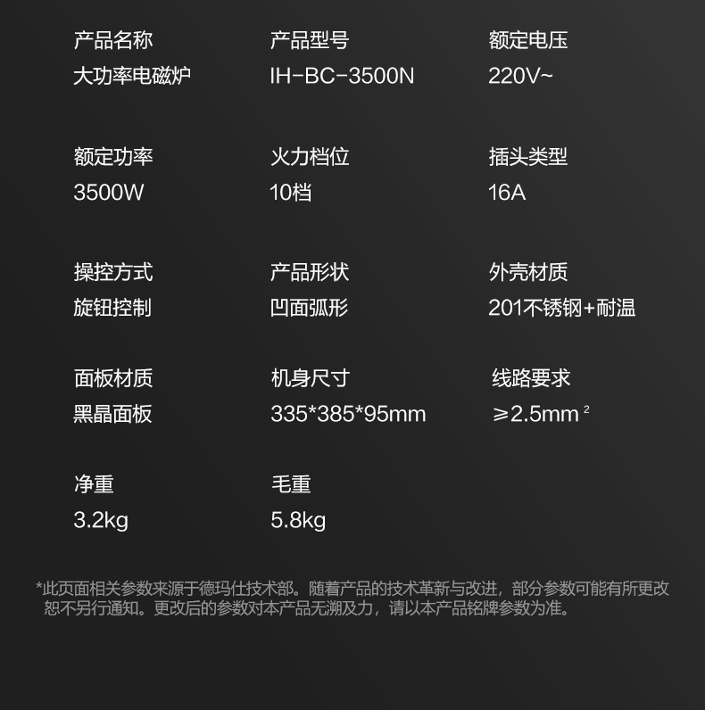 德玛仕(DEMASHI)电磁炉商用大功率3500W IH-BC-3500N