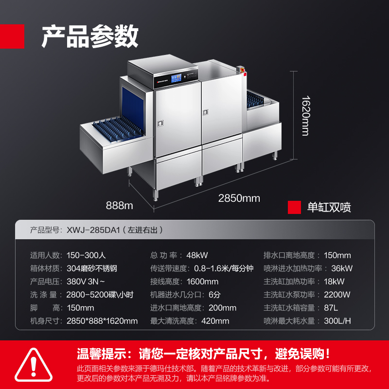 德玛仕商用洗碗机 长龙式 全自动化大型酒店食堂餐厅饭店大容量刷碗机 商用洗碗机XWJ-285DA1(左进右出)