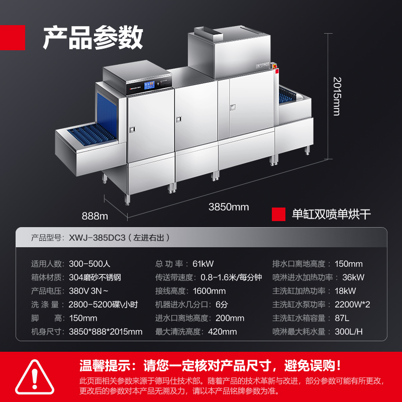 德玛仕商用洗碗机 长龙式 全自动化大型酒店食堂餐厅饭店大容量刷碗机 商用洗碗机XWJ-385DC3(左进右出)