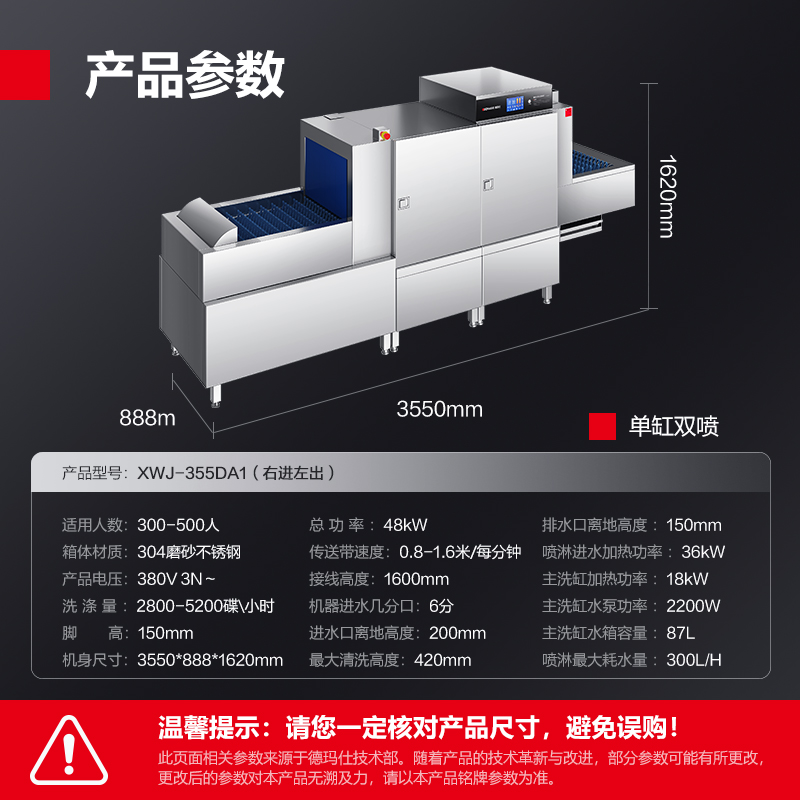 德玛仕商用洗碗机 长龙式 全自动化大型酒店食堂餐厅饭店大容量刷碗机 商用洗碗机XWJ-355DA1(右进左出)