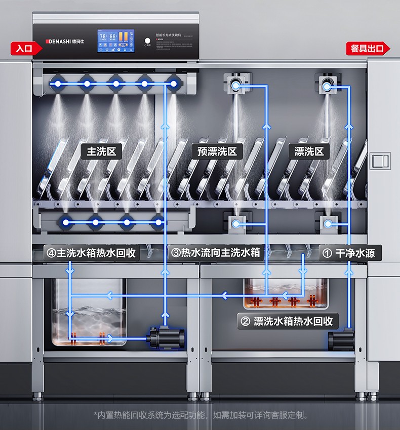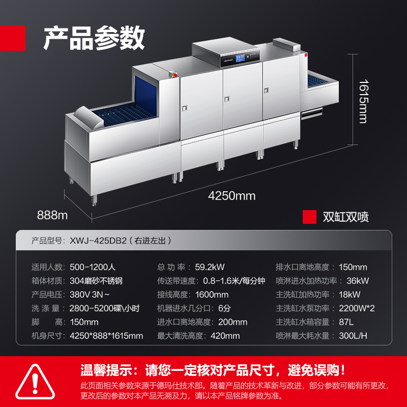 德玛仕商用洗碗机 长龙式 全自动化大型酒店食堂餐厅饭店大容量刷碗机 商用洗碗机XWJ-425DB2(右进左出)