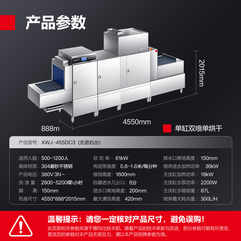 德玛仕商用洗碗机 长龙式 全自动化大型酒店食堂餐厅饭店大容量刷碗机 商用洗碗机XWJ-455DC3(左进右出)