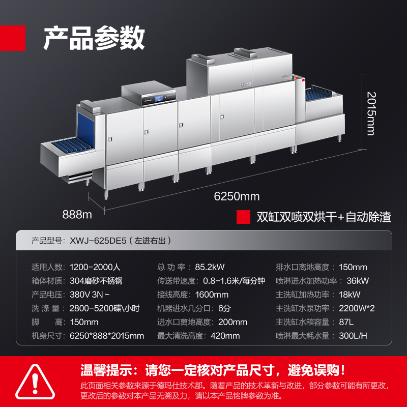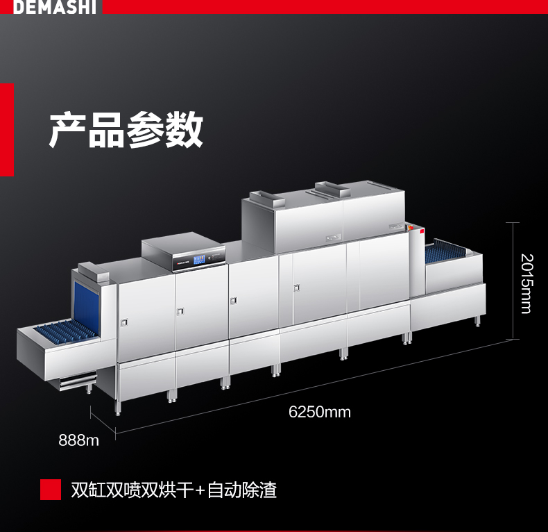 德玛仕商用洗碗机 长龙式 全自动化大型酒店食堂餐厅饭店大容量刷碗机 商用洗碗机XWJ-625DE5(左进右出)