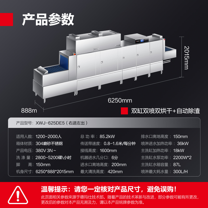 德玛仕商用洗碗机 长龙式 全自动化大型酒店食堂餐厅饭店大容量刷碗机 商用洗碗机XWJ-625DE5(右进左出)