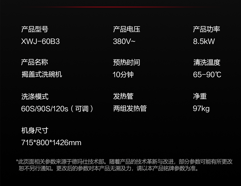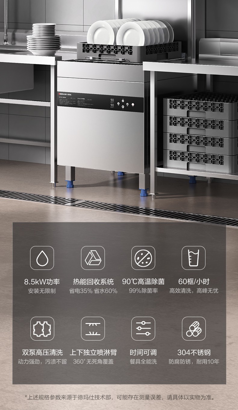 德玛仕(DEMASHI)商用洗碗机揭盖式 全自动饭店餐厅酒店学校食堂洗碗机洗盘子洗杯机大型【餐饮】 【双泵单位款】380V丨XWJ-60B3